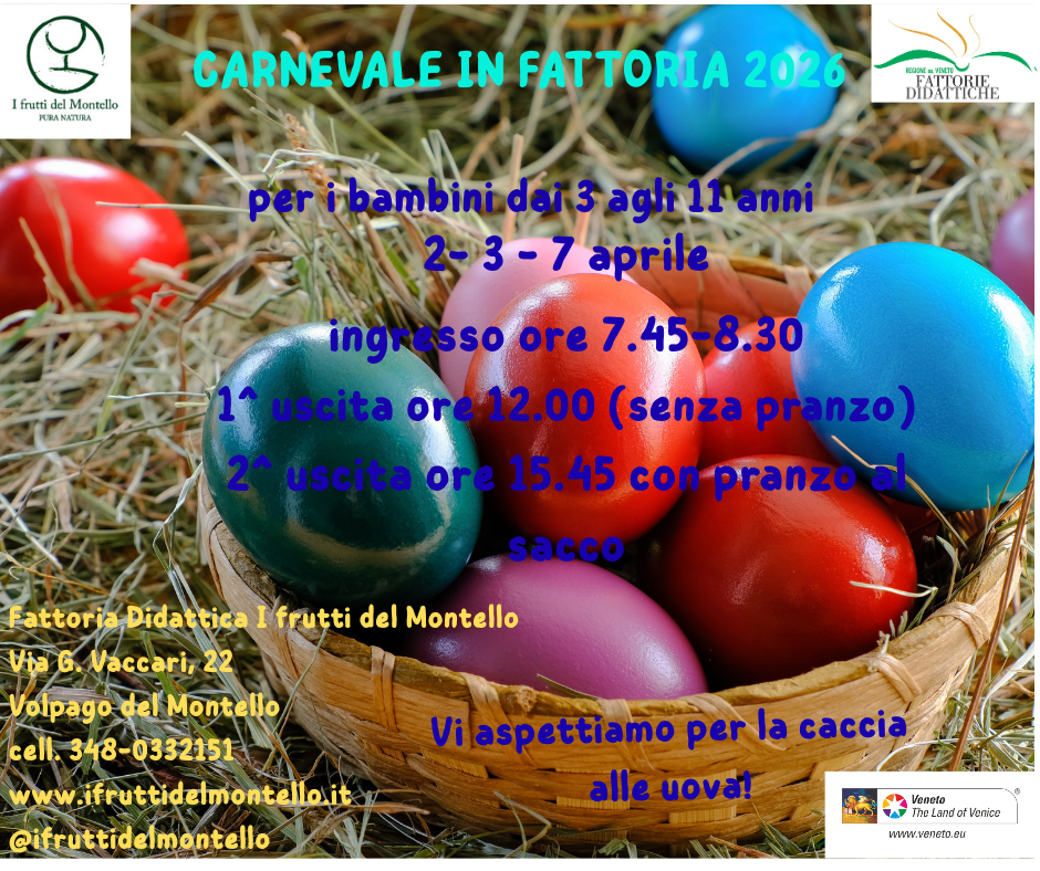 Per dare la possibilità ad adulti, bambini e scolaresche di condividere con noi la nostra azienda agricola, i nostri saperi e il nostro meraviglioso territorio abbiamo pensato di diventare anche Fattoria Didattica riconosciuta dalla Regione Veneto.